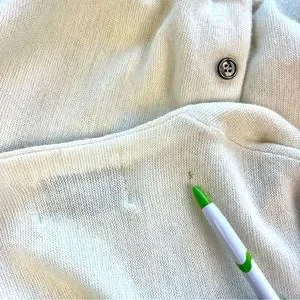 Flaw: small moth bite on upper back near shoulder - see photo