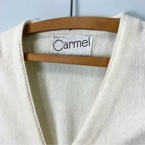 VINTAGE Button Down Cardigan Sweater - Eggshell White by CARMEL Made in USA