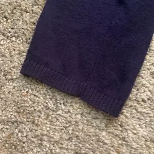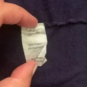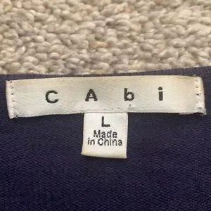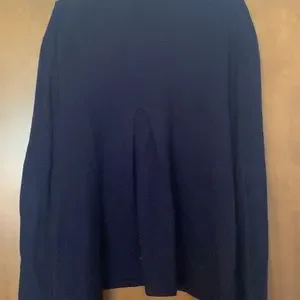 Cabi blueberry color open front waterfall cardigan. Cotton and cashmere. Size large. Style #160. Neck in back repaired. Pleat in back and ribbing on sleeves. Worn as set with Cabi long sleeved ruched crossover top. If but both items 15% discount.