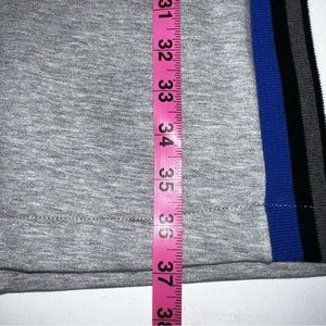Bailey44 long sleeve heather gray fleece sweatshirt dress with one cold shoulder and blue, white & black stripe detail. Size small. Super soft & comfortable. Size small. 37 inches in length. From underarm to underarm it’s 21 inches across. New with tags/not previously worn. Flawless. I bought it for myself but never wore it. $198 retail value. Buy with confidence; I’m a Posh Ambassador, top-rated seller & fast shipper.