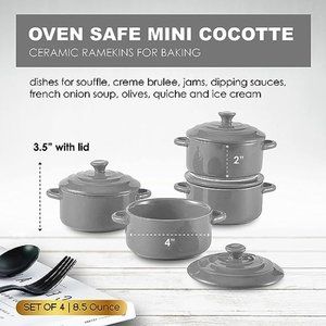 Bruntmor 8.5 Ounce Mini Cocotte Ceramic for Baking, Mini Casserole) *new*