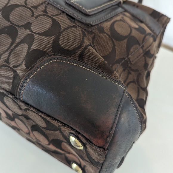 classic coach sig bag. perfect for fall and winter. good used condition with normal signs of wear. I've conditioned and custom polished the bag so it's looking great! one spot on front leather and slight sun discoloration patch on bottom. The bag also has rubbing on the corners!