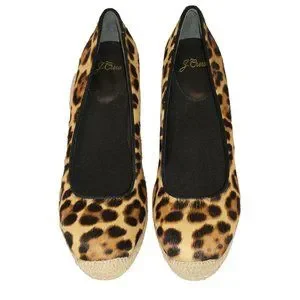 J. Crew Seville Leopard Print Calf Hair Wedge Espadrilles - Size 8