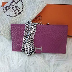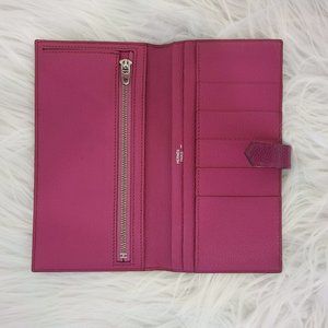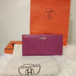 Astounding EUC Hermes LIZARD Bearn Long Wallet Full Inclusion + Bag! Magenta
