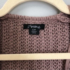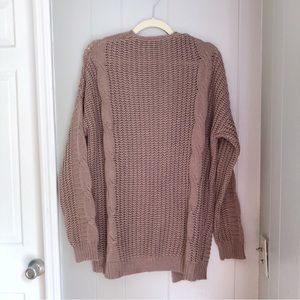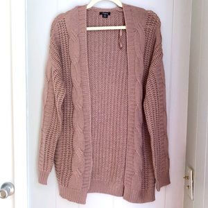 Chunky Cable Knit Open Front Long Sleeve Cardigan Sweater Top Mauve Small Womens