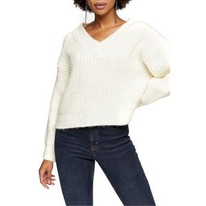 Topshop XL V Neck Sweater Knit Top Womens Ivory Drop Shoulder NWT
