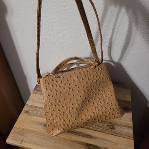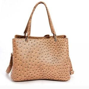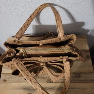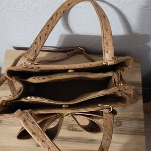 Ostrich Bow Faux Leather 3 Compartment Satchel - Camel