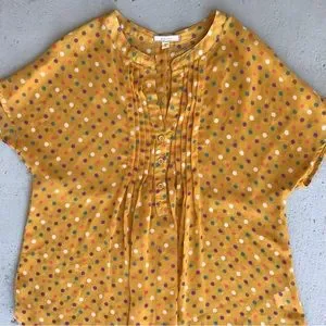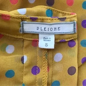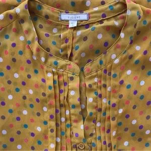 PLEIONE by ANTHROPOLOGIE Pintucked Pleated Multicolor Polka Dot Pullover Cap Sleeve Sheer Blouse