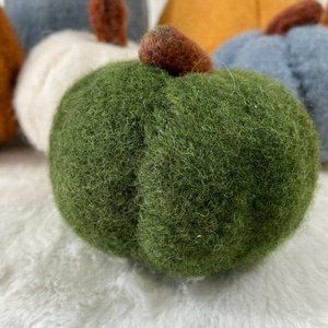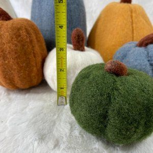 Add some fall decor to your home with this set of 9 felt pumpkins. These Felt Pumpkins are the perfect Fall Home Decor Accessory. Each Pumpkin is covered in Fall Colors harvest gold, white, dark green, blue,light brown. Farmhouse Pumpkins would be the perfect tabletop decor for Thanksgiving. Pumpkins ship brand new in manufacturer's packaging