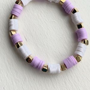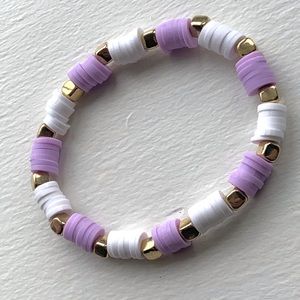 Handmade clay bead bracelet purple/white gold square bead’s stretchy