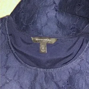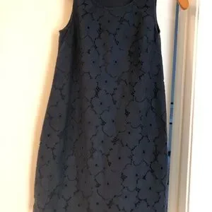 Navy floral lace/eyelet dress with lining. Size 0 petite. 15.5” pit to pit, 30” length. Side zipper.