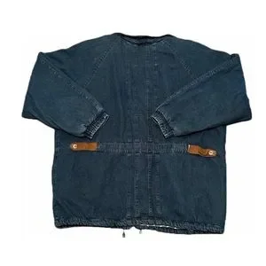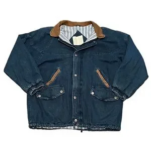 Vintage Genuine Leather Trimmed Denim Coat by SERGIO 27 x 29