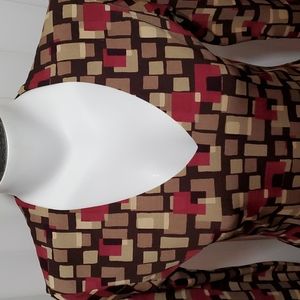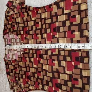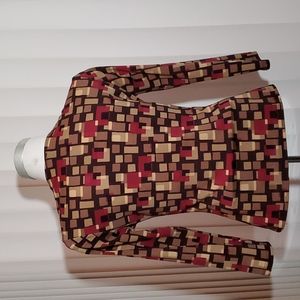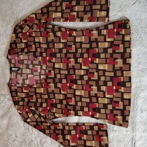 FOREVER 21 Black w/Geo Block Print Blouse - 3/4 Sleeves- Fitted-Stretch-EC- Sz S