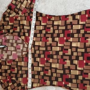 FOREVER 21 Black w/Geo Block Print-3/4 Sleeves-Fitted-Stretch-Blouse. EUC-Sz S