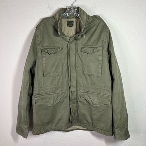 Lucky Brand Mens Olive Green Four Pocket Field Jacket Zipper Mock Neck Large
