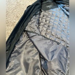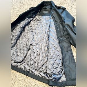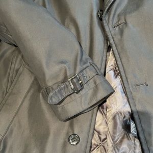 Go vintage to the max in this fabulous three quarter length trench coat by the iconic London Fog. Truly beautiful, with full zip out lining, the fabric has that sueded finish that makes it super soft to the touch. Great trench details on shoulder and at wrist, with three button front, two outer pockets and an inner zippered pocket as well, so plenty of place to stash your stuff. I am pretty sure that my dad bought this but then decided it was too nice to wear in the rain, so i don't believe it has ever been worn. I did wash it to freshen it up after sitting in an unventilated house for more than a few years. Measures approximately 23 3/4 inches across at the armpit and 36 1/2 inches in length.