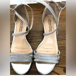 BADGLEY MISCHKA American Glamour Silver Sparkle Sandals Shoes Size 6 1/2