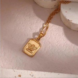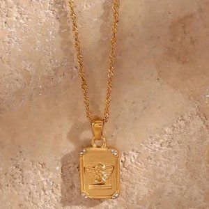 NEW 18K GOLD ANGEL PENDANT DIAMOND NECKLACE