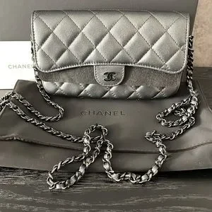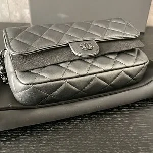 LIMITED EDITION CHANEL SO BLACK QUILTED FLAP PHONE HOLDER WITH CHAIN