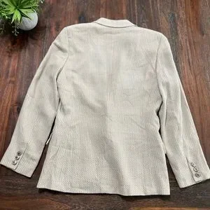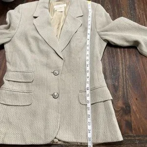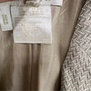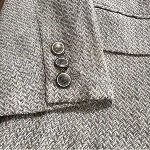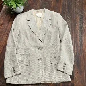 Escada Neutral Herringbone Blazer Cream Tan Margaretha Ley Vintage 36 2 button.