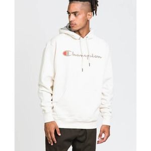 CHAMPION NEW Men's Powerblend Fleece Pullover Hoodie Script Logo Natural Medium