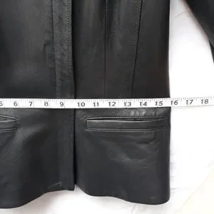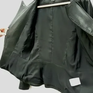super soft lamb leather jacket in a classic style. wear it open or zipped, super flattering slight peplum cut. like new and worn only a handful of times. one small scuff in the leather on the back of right shoulder, pictured.