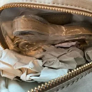 Size: Purse: 7” Round Diameter x 2″ Depth Zipper length: 9 1/2” Strap drop: 22 1/2” Strap width: 1/2” Materials: Interior Polyurethane 100% with interior Polyester 100% lining.