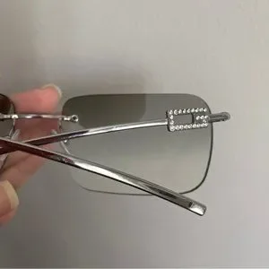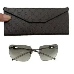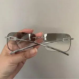 Vintage, Tom Ford-era, Gucci, rimless/frameless, rectangular, wrap around sunnies! Rhinestone Gs on either side of temples. GG1780/STRASS 6LB29 60-17-125, made in Italy. 🇮🇹 Authentic, super trendy!