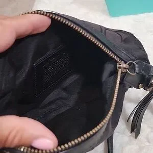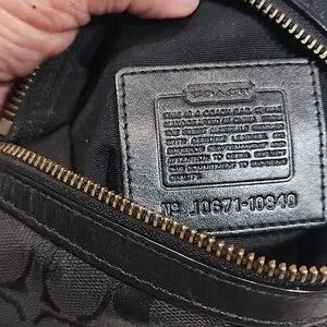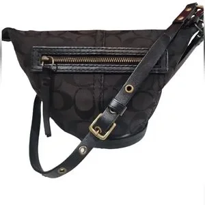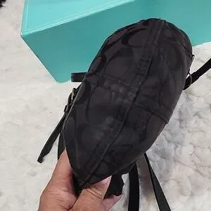 Coach Signature Mini Crossbody Swingpack Monogram Jacquard print. Zipper closure, One additional Zip pocket on front, canvas body with Coach cc logo, leather trim and leather Crossbody strap with buckle to adjust length. Good preloved Condition.