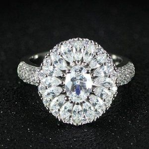 NEW 925 STERLING SILVER ROUND DIAMOND RING, CUTE RING, SHINY RING.