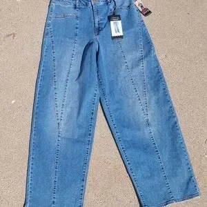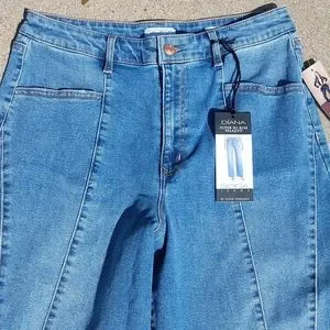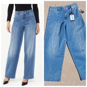 Ready for a flashback? Sophia Vergara "Diana" Palazzo Super High Rise Silhouette with roomy wide leg Jean. Im 5'8" and they go to my ankle. Attractive front leg seam. Size says 12S but it has a fairly long inseam. Lots of Stretch!