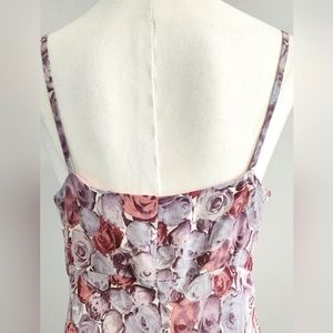 vintage women long maxi dress purple floral sleeveless spaghetti straps zip lined lightweight casual semi formal party celebration wedding evening bohemian sexy
