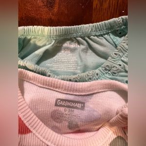 Bundle of 6 granimals, onesies, shorts, size 0-3 months, pink, blue.