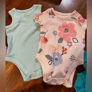2) white ribbed floral print onesie