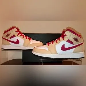 AIR JORDAN 1 MID “LIGHT CURRY CARDINAL” BRAND NEW WITH BOX GRADE SCHOOL SIZE 7Y
