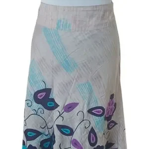 Monsoon Embroidered Skirt UK Size 16 Applique Beige Purple Blue A-line Lined