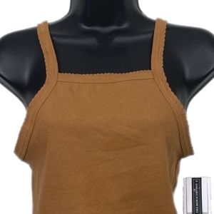 Nwt | BP. Picot Trim Cotton Blend Rib Bodysuit in Tan Dale Size Small & Medium