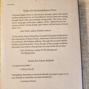 "In the heart of Louisiana's Atchafalaya Basin, a letter sent from an isolated settlement to France shows up at the Bayoy Chene post office. That same day locals find a dog, nearly dead tethered to an empty skiff." Rolan, author of "Atchafalaya Houseboat," knows her swamp people, and readers will feel lucky to know them too." --Ken Wells