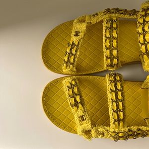 SOLD ❌ New 🌟 Rare Chanel CC Tweed Chain Yellow Sandals Size 39