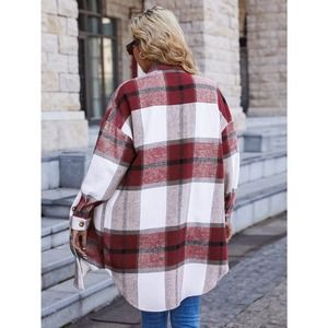 Plaid Print Drop Shoulder Overcoat long shacket boyfriend jacket navy blue
