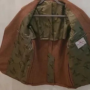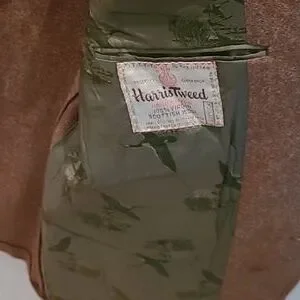 Beautiful HarrisTweed Jacket. Marked #955093 . 100% Virgin Scottish wool. Tabacco brown with hunter green lining.