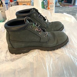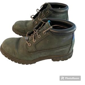 Timberland boots Nellie Chukka deep green SZ 8.5 Worn once. There is scuff on each boot see pictures where it’s pointed out. No issues with the integrity. Cosmetic only. Beautiful comfy and warm. Suede laces