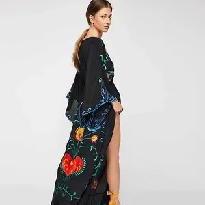 28.LAST 1! OVERSIZED Black Bohemian Embroidered Button Down Maxi Dream Dress