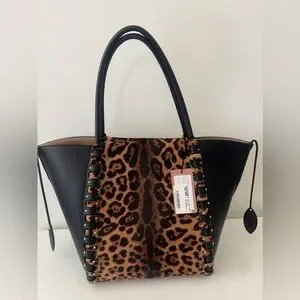 New with tags $5,250 ALAIA Le Hinge Leopard-Print Calf Hair Tote Bag Handbag