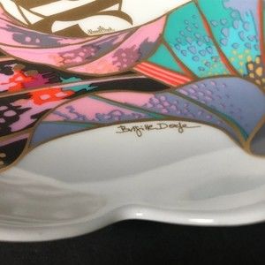 ROSENTHAL JAN VAN DER VAART MODERN DISH/SHALLOW BOWL. SIGNED BY ARTIST BRIGITTE DOEGE Measures approx. 6" X 5-1/2" Nice condition. No chips, cracks or repairs, but does have some scratches to paint. Please zoom in on photos as they are a part of the description. We have a non smoking environment.