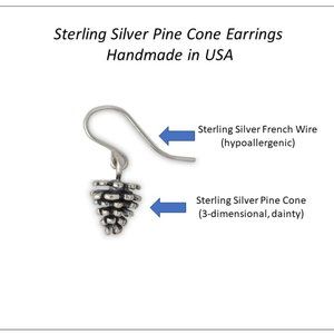 ππππ ππππ ππππππππ β Dainty Sterling Silver Pine Cone Earrings on Stamped Hypoallergenic Sterling Silver French Wires. Sterling silver pine cones are 3-dimensional and measure .5β high. Drop length is 1".