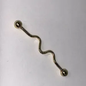 14 Gauge Gold Industrial Bar Squiggly Design. 14 gauge titanium plated surgical steel industrial bar squiggly design.