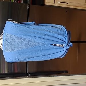 Loose fit, tie back, Powder Blue, back mesh panel, 65% polyester, 35% rayon