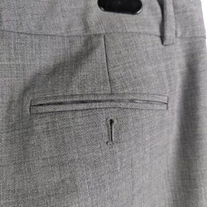 Condition Pre-owned Seller Notes “Good Condition” “No stains, holes, or tears” **LOOSE BUTTON AT THE RIGHT POCKET.** WAIST 30" HIP 37" RISE 8" INSEAM 30" LENGTH 37.5" Pattern Solid Closure Button, Zip Occasion Business, Casual, Formal Size 4 Waist Size 30 in Color Gray Material Wool Front Type Flat Front Fabric Type wool Accents Button Vintage No Rise Low (6.5-8.5 in) Brand Theory Fit Classic Size Type Regular Department Women Type Pants Leg Style Wide-Leg Inseam 30 in Style Dress Pants Theme dress pants Features Lightweight Season Fall, Spring, Summer, Winter