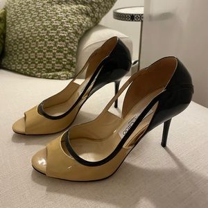 Two toned black & tan pumps, excellent condition!! 3.5” heels. Peep toe with cutouts